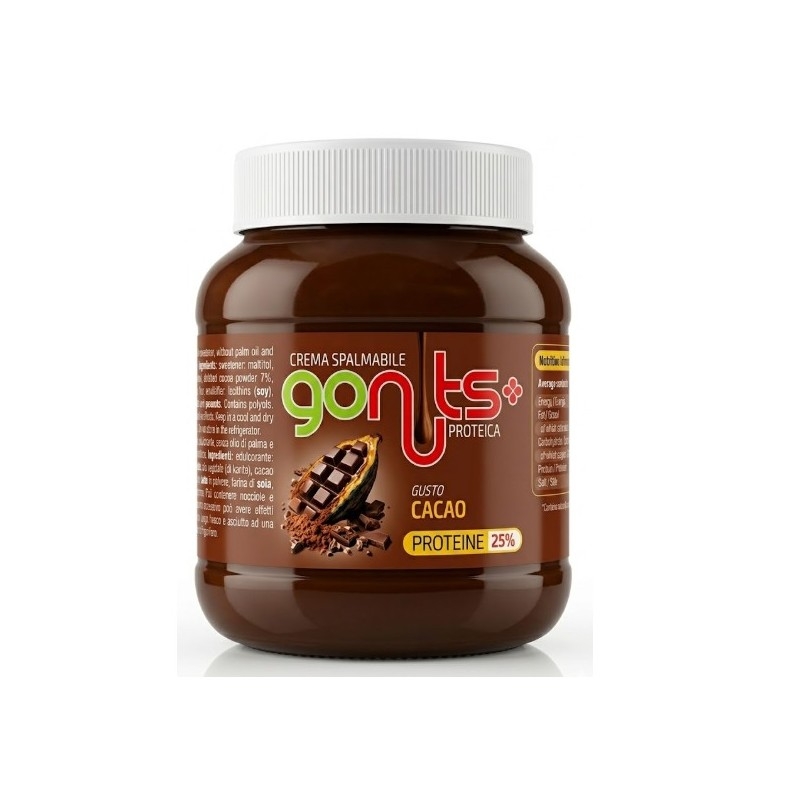 GoNuts Proteica Gusto Cacao è una crema spalmabile pensata per chi cerca un'alternativa ad alto contenuto proteico senza rinunciare al piacere del cioccolato. Grazie alla sua formulazione con il 25% di proteine del siero del latte e l'assenza di zuccheri aggiunti, rappresenta una soluzione ideale per spuntini bilanciati o per arricchire la colazione. La ricetta non prevede l'utilizzo di olio di palma ed è naturalmente priva di glutine.