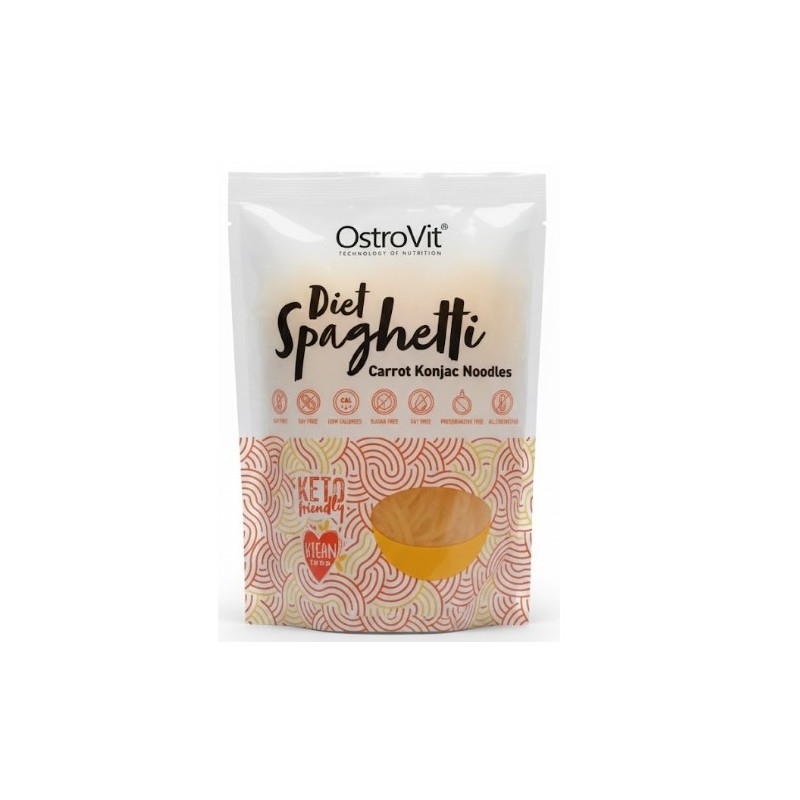 Gli Spaghetti di carota Konjac OstroVit Diet rappresentano l'equivalente ipocalorico dei classici spaghetti di farina di grano. Il prodotto è a base di farina di konjac, una pianta nota per l'alto contenuto di fibre e il bassissimo apporto energetico. Questa pasta è completamente priva di glutine e non contiene zuccheri aggiunti, rendendola ideale per chi segue diete ipocaloriche, chetoniche o per chi deve monitorare l'indice glicemico.