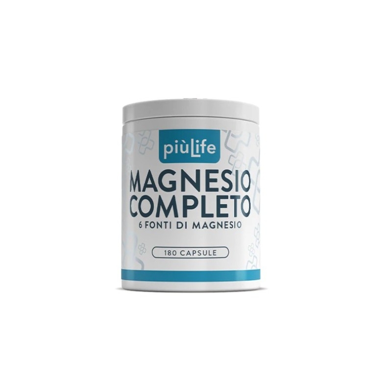 Magnesio Completo di PiùLife è un integratore alimentare formulato con una miscela di 6 diverse fonti di magnesio per garantire una biodisponibilità ottimale e un supporto completo all'organismo. La combinazione di magnesio carbonato, gluconato, citrato, bisglicinato, ossido e L-pidolato permette di sfruttare i diversi canali di assorbimento del minerale, contribuendo alla riduzione della stanchezza e dell'affaticamento, al normale funzionamento del sistema nervoso e alla normale funzione muscolare.